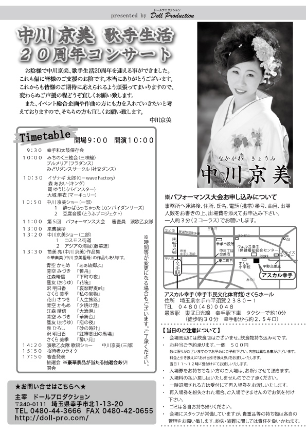 | 2012年5月6日 (日曜)中川京美歌手生活20周年コンサート |